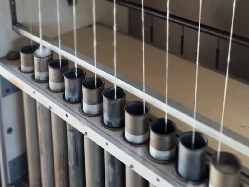 撚る回転数や糸を送り出すスピードを工夫することで、風合いを生かしつつ、切れにくく、使いやすい糸作りがはじまりました。