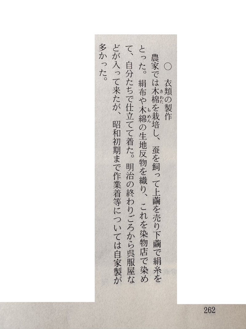 『中伊豆町誌』を読み返すと、この地域ではかつて、 絹を養蚕し、絹や木綿の反物を織り、染めて身につけるという暮らしが 営まれていたことが記されています。 素材から、糸へ、布へ、そして衣服へ。 それらがひと続きの営みとして、この土地の中に確かに存在していました。